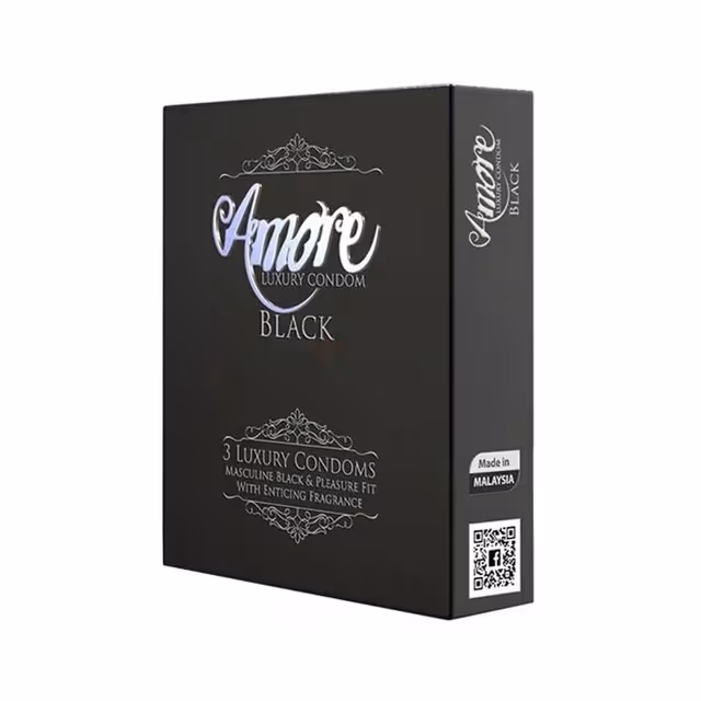 The Amore Luxury Black Condom 3's Pack is a premium-quality condom designed to combine safety with a unique sensual experience. Made from the finest natural latex, it features a smooth texture with added lubrication for comfort and ease of use. Its exotic black color and subtle vanilla fragrance create a distinctive touch, making intimacy more pleasurable and memorable. Each condom is carefully crafted to provide reliable protection while enhancing closeness, offering couples a stylish and safe option in the luxury condom category.