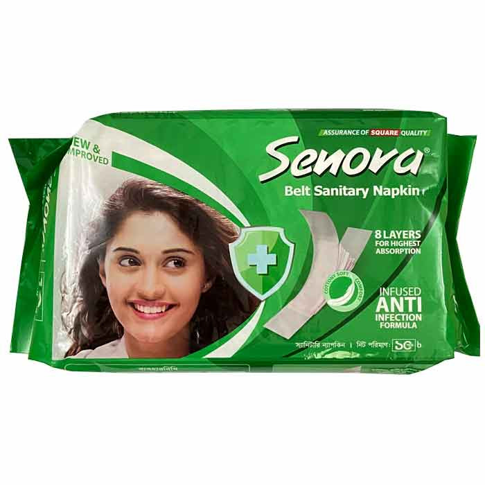 * Cotton Soft top layer gives best comfortable feelings The word ‘sanitary’ means clean or hygienic. So that’s exactly what a sanitary napkin does or should do – take care of the menstrual flow in a safe, hygienic way. Senora Regular offers advanced and full absorbency protection to women. The extra long Senora XL ensures full protection of dryness for long hours. So step ahead girls, without worrying of leakage ever. Senora is committed to ensure health and hygiene for women- once they are free from worrying about health they can achieve all other things they want in life. Senora Panty Sanitary Napkin 4 pads made from 8 layer for highest absorbent and ifused anti infecetion formula.