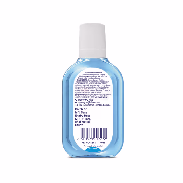 When the protective layer of teeth (enamel) is worn away or gums recede, the dentine underneath can become exposed. When the exposed dentine comes in contact with hot, cold, sweet, sour food and drinks or even toothbrush, it can trigger a sharp short sensation called tooth sensitivity. Sensodyne has designed and formulated an entire range of oral care products (toothpaste, brushes and mouthwash) to help protect people against tooth sensitivity while still providing the benefits of fluoride, cavity protection and fresh breath. Normal eating or drinking exposes teeth to sugars or acids, leaving them vulnerable to wear & tear, specially at night. Sensodyne Complete Protection+ Mouthwash is an effective way to complete your oral health routine. It helps protect against tooth sensitivity as well as provides multiple oral care benefits like lasting freshness, cavity protection and strong enamel. The formulation is uniquely designed without alcohol for apleasant usage experience without burning sensation in mouth. Cool Mint flavor gives lasting freshness while fluoride protects against tooth wear and cavities. Twice daily usage after brushing helps protects from sensitivity to help you enjoy your favorite foods and drinks without the worry of sensitive teeth. Sensodyne Complete Protection+ mouth wash is available in two pack sizes - 250 ml and 100 ml. For optimal care, use together with a Sensodyne paste & toothbrush. Always follow instructions and guidance included on the pack before use. Sensitive teeth may indicate an underlying problem which needs prompt care by a dentist. If symptoms persist or worsens, consult your dentist.